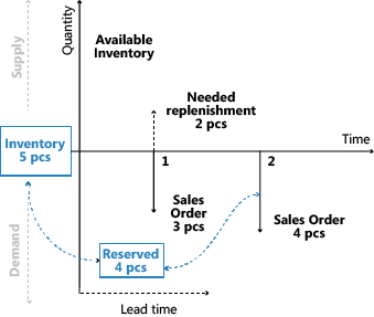 However, the planning system will still include reserved quantities in the projected inventory profile because all quantities must be considered when determining both when the reorder point has been passed and how many to reorder to reach and not exceed the maximum inventory level. Consequently, unnecessary reservations will lead to increased risks that inventory levels run low because the planning logic does not detect reserved quantities.