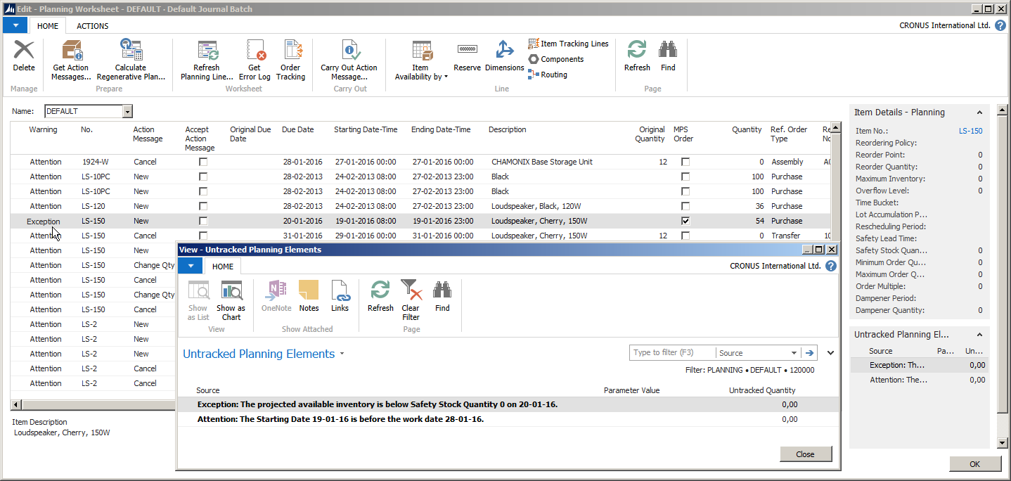 Dynamic Order Tracking, with its simultaneous creation of action messages in the planning worksheet, is not a part of the supply planning system in Microsoft Dynamics NAV. This feature links, in real-time, the demand and the quantities that could cover them, whenever a new demand or supply is created or changed.