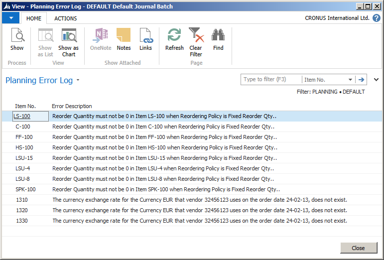 The basic supply planning tool represented by the Order Planning window is designed for manual decision making. It does not consider any planning parameters and is therefore not discussed further in this document. For more information on the Order Planning feature, refer to Help in Microsoft Dynamics NAV.